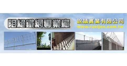 銳鎮實業有限公司成立於1992年,已歷十五年,專營刮刀刺絲網、尖山座【防盜雷】等,長期培養專業施工團隊,已累積設計、施工經驗豐富,過去以施作軍隊之機場及機敏處所居多,隨著本公司不斷研發施工法,近期已獲得各上市公司﹝奇美實業、中鋼、台塑、第一伸銅﹞、中小企業及住宅別墅區愛用,感謝您的支持,銳鎮公司 準備好了,隨時歡迎有機會能為您服務!