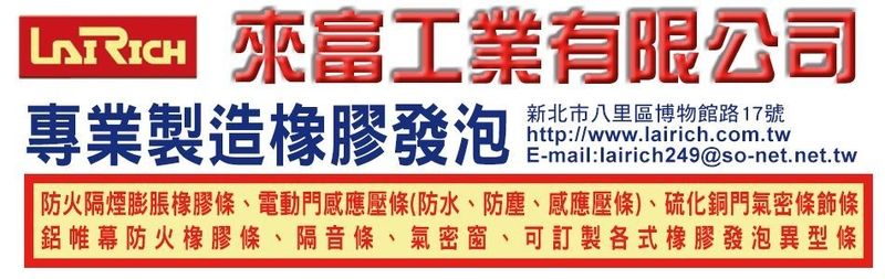 防火隔煙膨脹膠條、電動門感應壓條(防水、防塵、彩色橡膠條、硫化銅門氣密條、飾條)、塑膠條、汽車擋風橡皮、車門海棉呢糟、水切塑膠條、製造批發、防火橡膠氣密條、防火橡膠發泡條、鋁帷幕牆防水橡膠條、隔音條、氣密窗、可訂製各式橡膠發泡異型條、發泡條、海綿條、發泡管、海綿管