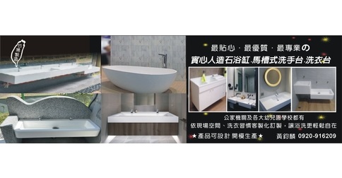 本公司創辦人曾任職於國內知名人造石材廠18年,為全國偉大辛苦之婦女同胞提供一個完善、美觀並合乎人體工學之洗衣空間,精研產品不斷開發新模具,堅持使用國產之特殊不飽和環氧樹脂及100%氫氧化鋁,並全程在台灣生產製造,品質看得見,使用者更有保障、更加安心。