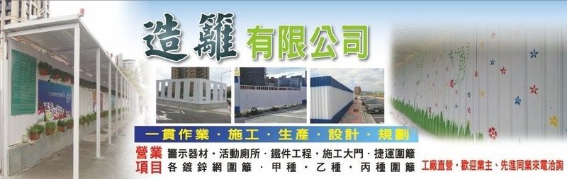 造籬有限公司/我們的服務沒有距離、我們的熱忱也從不休息、全省隨時為您服務-組合房屋、組合屋、活動廁所、安全圍籬、施工大門、活動圍籬、甲種圍籬、帆布圍籬、丙種圍籬、甲乙種圍籬、捷運圍籬、鍍鋅網圍籬、安全走廊、警示器材、工地欄杆鐵件工程、高速鐵路圍籬、地下鐵路圍籬、工地警示器材、乙種帆布圍籬、上網下板圍籬、衛工處圍籬、工地警示燈、工地告示牌、工地剪刀門、上網下板圍籬