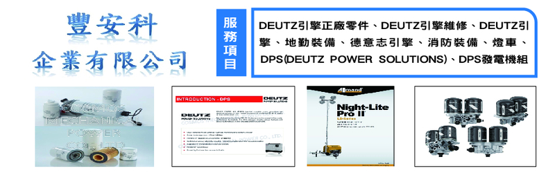 DEUTZ引擎正廠零件、DEUTZ引擎維修、DEUTZ引擎、地勤裝備、德意志引擎、消防裝備、燈車、DPS(DEUTZ POWER SOLUTIONS)、DPS發電機組
