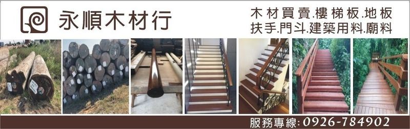 原木買賣、木材買賣、非洲柚木、日本檜木、緬甸柚木、巴西紫檀、紫心木、塔塔木、蝴蝶木、樓梯板、地板、扶手、門斗、建築用料、廟料、戶外景觀用料