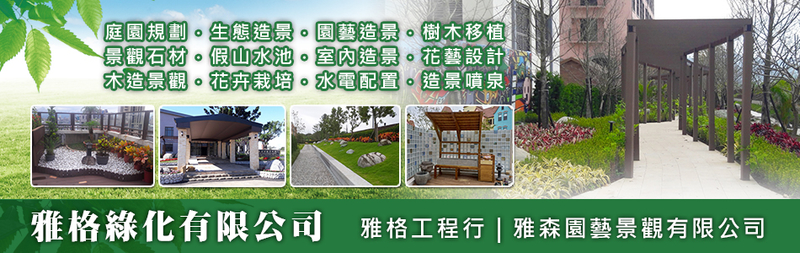 雅格綠化有限公司成立於民國81年,以雅格園藝之名於新北市三峽區草創至今已逾30年,期間歷經股東改組、公司轉型,並依循政府法令於民國95年6月正式登記申請公司執照,並將服務範圍擴大至北台灣各地。