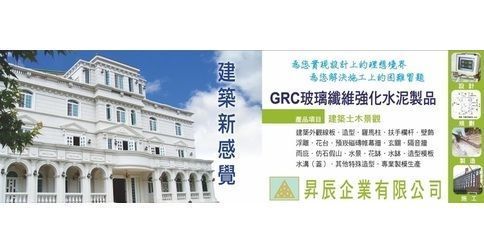 昇辰企業有限公司是一家專業從事GRC(玻璃纖維強化水泥)和FRP(玻璃纖維增強塑料)製品的製造和供應公司。我們的產品範圍包括建築外觀線板、羅馬柱、扶手欄杆、壁飾、浮雕、門框、窗框、窗台、花台、預崁磁磚帷幕牆、玄關、雨庇、GRC線板、仿石、假山、水景、花缽、水缽、造型模板、隔音牆、寺廟欄杆、雀替、斗拱、懸魚、佛像、公仔、其他特殊造形、踢腳板、防撞條、車輪擋、卸貨平台防撞條、反射鏡、文化石、文藝石、建築土木景觀、建築外觀造型、仿石假山、水溝、水溝蓋等多種產品。