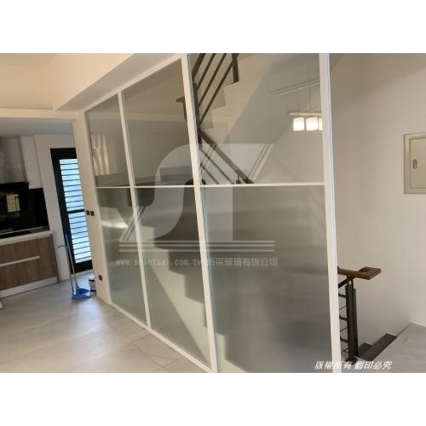 同步緩衝拉門 防晃五金 白框玻璃隔斷牆屏風 幽靈門 旋轉門 , 昕采玻璃有限公司