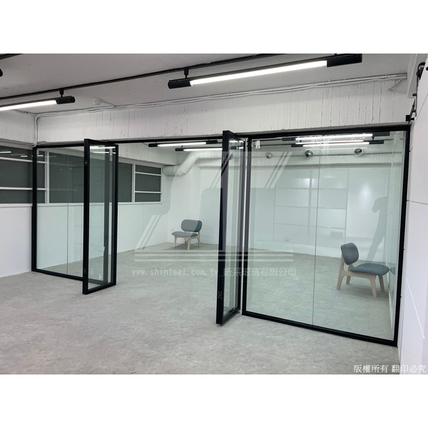 鋁框隔間 辦公室鋁框推拉門工程 同步緩衝拉門 幽靈門-昕采玻璃有限公司