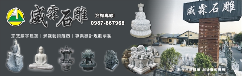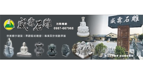 威霖石雕工程有限公司為一家專業景觀與建築石材公司,主要經營寺廟規劃設計、專業寺廟3D圖設計、宗教雕刻、景觀雕塑、金屬雕塑、石雕茶盤...等服務,包含中式、日式、歐式建築、等不同風格石材雕刻品,可完美搭配於各式建築及庭園,並擁有國際級的專業技術和生產設備,是宗教廟宇、景觀藝術石雕中的專家。