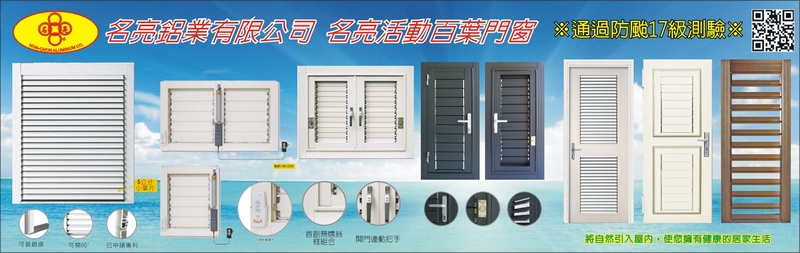 名亮鋁業主打「活動百葉門窗系統」,產品通過防颱17級測試,