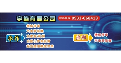 宇能有限公司專營汽車昇降機、停車設備、自動化停車設備、油壓客梯、油壓貨梯,經驗老道,服務第一!