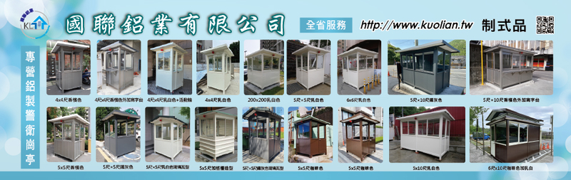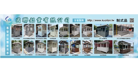 國聯鋁業有限公司,產品有警衛亭、崗亭、警衛崗亭及各種鋁製品,秉持<客戶至上,品質第一>之宗旨,提供產品諮詢,售後服務技術支援,深獲好評與讚賞。