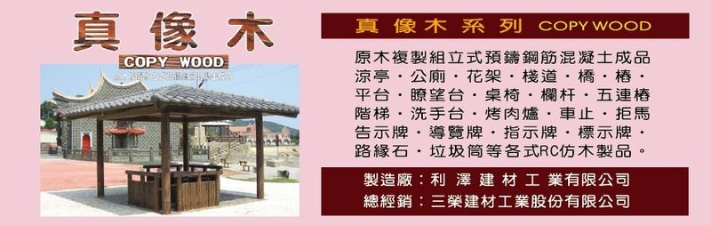 本公司創立於西元1962年,秉持誠信的經營理念,以多年從事土木建材經驗加上最新的研發技術,推出或代理設計、品質兼優的各項水泥製品,長久以來深獲業界及使用者的肯定與認同,本公司所屬利澤建材工業有限公司有鑑於此,師法先進國家以「配合自然生態、美化環境兼具安全考量」為訴求,引進日本興業株式會社之技術,開發原木複製的混凝土產品—真橡木。