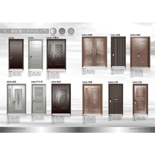 玄關門、防火門、銅雕門、鋼木門、房間門、浴廁門、拉門、硫化銅門、車庫門、通風門、鍛造門、三合一通風門、氣密窗、玻璃防火門、橫拉式防火門、庭園門、防盜門、鍛雕鋼板、180°前後推開防火門、F60A木製防火門、F60A鋼製防火門、鋼木複合防火門、陶瓷玻纖門、F60A木製防火門FRP玻纖、F60A防火鋼木門鋼框鑄鋁板、F60A防火鋼FRP玻纖、F60A防火鋼木門木質肚板、F60A防火鋼木門CNC、玻璃防火門、鋼木複合防爆門、木門、浴室門鍛造門、民宿門、高級白鐵玄關、高級鑄鋁、淋浴拉門、木製防火門、鋼製防火門、玻璃防火門、門鎖、防火鋼木門、陶瓷玻纖門、溝槽門、鋁合金浴廁門、鋁合金房間門、ABS浴廁門、晶雕彩繪門、氣密窗安裝、白鐵門安裝、鑄鋁門安裝、日式花鑄鋁門、宿舍門、白鐵穿梭管防盜門、直三段硫化銅、烤漆雙玄關、昶實浴廁門、南檜實木門、硫化銅防盜門、孔雀開屏鍛造花、金松木門、白鐵信箱門、半氣密窗、排骨門、ABS尿隔屏、屋頂後門