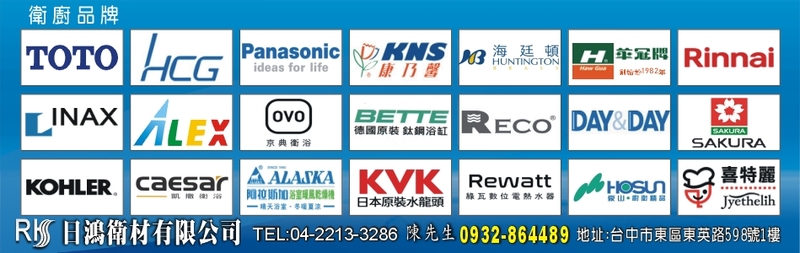 台中市東區衛廚生活館、台中市東區衛浴、台中市太平區衛浴、台中市北屯區衛浴、台中市大里區衛浴、台中市南區衛浴、台中市北區衛浴、台中市衛浴設備安裝、各品牌衛浴設備專業維修、德國GROHE維修零件、TOTO衛浴、INAX衛浴、HCG和成衛浴、ALEX電光牌衛浴、CAESAR凱撒衛浴、OVO京典衛浴、德國原裝BETTE鈦鋼浴缸、KVK日本原裝水龍頭、海廷頓無鉛龍頭、RECO不銹鋼龍頭、Rewatt綠瓦數位變頻恆溫瞬熱式電熱水器、Day&Day廚房衛浴不鏽鋼系列產品、Panasonic浴室換氣暖風機、ALASKA阿拉斯加浴室換氣扇、乾溼分離淋浴拉門、淋浴門止水條、LG人造石檯面客製化、Corins柯林斯防水實心發泡板浴櫃鏡櫃、浴室地磚壁磚泥作翻修工程、壓克力浴缸、Rinnai林內廚房三機、SAKURA櫻花廚房三機、喜特麗廚房三機、豪山牌廚房三機、電動曬衣架、洗衣槽、SPA蒸氣機、家庭水電維修LED燈具安裝、加壓馬達及抽水馬達安裝、二手馬桶水箱蓋、華冠牌鏡子、獨立式浴缸、排油煙機、瓦斯爐、熱水器、烘碗機、壁式瀑布出水浴缸龍頭、衛浴配件、廚房五金配件、KQ不銹鋼浴櫃、TENCO電光牌衛浴、HB衛浴、社福無障礙廁所、電腦馬桶蓋、美國杜邦石檯面客製化、浴室整體規劃修繕工程、天花板施工、廁所門舊換新