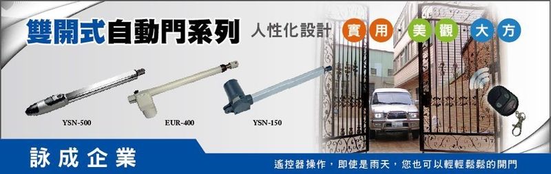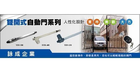 YUNSSAN、大門機、電動大門機、90°大門機、扇形大門機、藝術大門機、電動馬達、機械馬達、油壓馬達、地鉸鏈、推拉門、遙控式大門