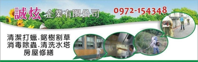 誠炫企業有限公司從事房屋修繕及環境維護服務工作,本公司是一家多年信譽的工程公司,專業值得您的信賴。 希望與貴公司能有合作的機會,以此表現我們的服務,用心及專業。本著對服務業的熱誠,我們堅持用最大的誠意和耐力要給每位客戶享有最好的服務和環境;最親切的態度、最用心的傾聽。 大小工程皆承作,價格合理省下您比價的時間 誠炫擁有自己的工班,並接受小額小量的清潔維護/房屋修繕工項,讓您在有限的預算裡,也同樣擁有設計風格的居家環境、辦公品質,讓你輕鬆無負擔!為您既省荷包又省時。