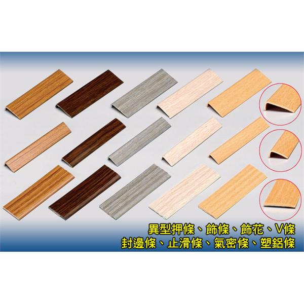 製造夜光止滑條、油漆專用V型收邊條、塑膠封邊條、飾條、外角收邊條、樓梯止滑條、押條、氣密條、毛刷條、V條、塑膠地磚收邊條、L型地板收邊條、雙夜光樓梯止滑條、塑膠押條、塑膠門檻、日本和室紙窗用障子紙、和室布、L型地板專用牆角板、飾花、自粘飾花、長飾花
