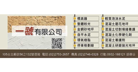 標高器、整體粉光、金鋼砂地坪、自平水泥、環氧樹脂、停車格劃線、泡沫水泥、混凝土壓花地坪、混凝土切割填縫養護、混凝土化學硬化劑、混凝土養護劑、混凝土研磨拋光地坪
