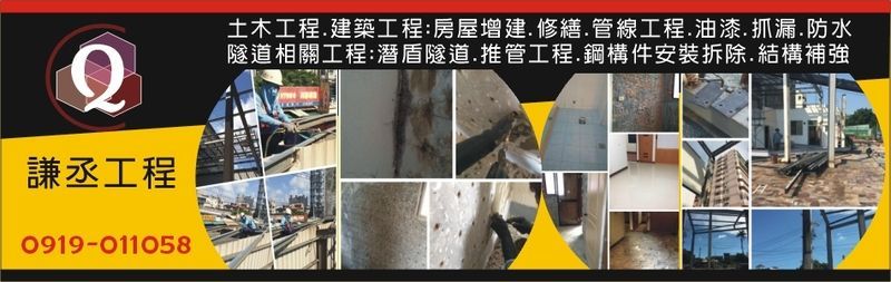 高雄防水、高雄抓漏、高雄結構補強、高雄舊屋翻修、高雄潛盾隧道、高雄油漆、高雄土木工程、木門訂製、舊屋翻修、土木工程、房屋增建、修繕、管線工程、建築工程、油漆、抓漏、防水、屋頂PU防水、屋頂防水隔熱、潛盾隧道、推管工程、鋼構件安裝拆除、木作裝修、結構補強、外牆防水、地坪修繕、壁癌處理、批土、噴漆、滲透結晶修復、外牆抗污防水、結構軀體防水、止漏防水、除甲醛、止漏處理、磚造壁體補強、止潮帶防水、壁癌處治、隧道工程、鋼構拆除、土水、房屋修繕、預壘樁壓樑施工、電纜隧道仰拱工程、外牆修復、高雄房屋增建、高雄止漏防水、登記字號:C90526-000、土木包工業