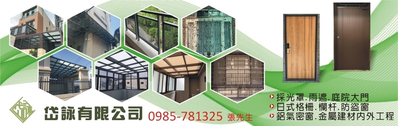 台中鍛造鐵門窗、台中東區採光罩工程、彰化不銹鋼採光罩、南投玻璃採光罩、苗栗不鏽鋼玻璃採光罩、台中PC板採光罩、霧峰玻璃採光罩、沙鹿採光罩、台中雨遮施工、太平不銹鋼雨遮、南投玻璃雨遮、大雅鍛造玄關門、大里空中花園、台中北屯玻璃屋施工、草屯玻璃屋、彰化和美玻璃屋、南投日式格柵、台中西區防盜門窗、埔里防盜門窗、新社防盜門窗、台中鍛造門窗、烏日潭子鍛造門窗、北區南區鍛造門窗、台中玄關內外門、南屯玄關內外門、台中日式格柵、北屯日式格柵、大里扶手欄杆設計、台中鍛造欄杆、台中市鍛造格柵欄杆、台中氣密窗施工、彰化氣密窗、台中百葉窗、南投百葉窗、台中東區南方松地板、台中西區南方松格柵、苗栗鍛造採光罩、太平玻璃採光罩、苗栗採光雨遮、埔里玻璃採光罩施工、專營藝術鍛造門、藝術鍛造窗、精品訂製、欄杆、扶手、不銹鋼防盜門窗、日式格柵、日式欄杆、玻璃欄杆、庭院大門、鍛造採光罩、玻璃採光罩、PC板採光罩、各式雨遮、南方松木地板、南方松格柵、鋁氣密窗、百葉窗、玄關內外門、電動捲門、新式鐵皮屋不銹鋼防盜門窗、鍛造欄杆、鍛造鐵窗、鍛造門窗、鍛造扶手、鍛造大門、鍛造採光罩、不銹鋼噴砂玻璃採光罩、不銹鋼反射、玻璃採光罩及雨遮系列、空中花園、鍛造精品、鍛造樓梯、鍛造車庫、鍛造窗、南方松採光罩、鍛花採光罩、強化噴砂玻璃採光罩、南方松採光罩、不銹鋼玻璃壓板、各式金屬建材設計、岱詠
