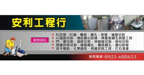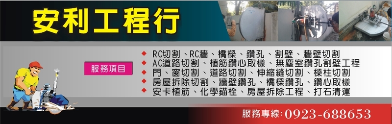 RC切割、RC牆、橋樑、鑽孔、割壁、牆壁切割、AC道路切割、植筋鑽心取樣、無塵室鑽孔割壁工程、門窗切割、道路切割、伸縮縫切割、樑柱切割、房屋拆除切割、牆壁鑽孔、橋樑鑽孔、鑽心取樣、安卡植筋、化學錨栓、房屋拆除工程、打石清運、建築物改修、電子廠房施工、無塵室施工、住家翻修改建、隔間拆除、房屋拆除工程、舊屋改建套房、消防鑽孔、水電鑽孔、空調鑽孔、大小工程承包、連續壁鑽孔、室內規劃設計、裝璜水電承包、室內裝璜拆除、地板開口切割、圾垃處理清運、拆除量多折數低、切割鑽孔、打石清運、水電鑽孔、RC牆、台中房屋拆除工程、台中RC牆、台中橋樑、台中鑽孔、RC、中部鑽孔切割
