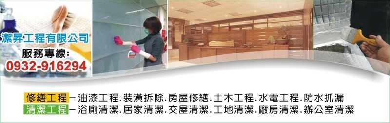 油漆、拆除、清潔、房屋修繕、家事服務、居家清潔、沙發清洗、交屋清潔、地毯清潔、木質地板拋光、外牆清洗、辦公室清潔、拋光打蠟、辦公家具清潔、地板打蠟、駐點包月清潔、垃圾清運、建築物拆除、廢棄物清運、滅蚊、白蟻防治、除蟲、土木工程、防水抓漏、清潔公司、洗水塔、消毒、石材養護、石材美容、油漆工程、大台北家事服務、大台北居家清潔、大台北沙發清洗、大台北交屋清潔、大台北地毯清潔、大台北木質地板拋光、大台北外牆清洗、大台北辦公室清潔、大台北拋光打蠟、大台北辦公家具清潔