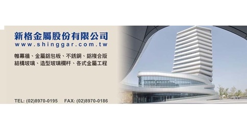 帷幕牆、金屬帷幕、採光罩、鋁包板、鋁格柵、造型金屬板、不銹鋼鍍鈦包板、不銹鋼鍍鈦大門、雨庇、天窗、牆面包板、包柱、包樑、不銹鋼、鋁、銅、金屬建材、鋁帷包板、鋁板帷幕牆、鑄鋁帷幕牆、不銹鋼帷幕牆、玻璃帷幕牆、複合鋁板帷幕牆、琺瑯版帷幕牆、雙邊隱框帷幕牆、四邊隱框帷幕牆、不銹鋼及鋁門屏、固定窗、推開窗、直軸窗、橫拉窗、結構玻璃、鋁擠型、造型鋼構、景觀造型、造型玻璃扶手欄杆、登記字號:B20193-000、專業營造業