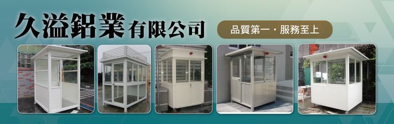 久溢鋁業成立於1990年,初期販售各類鋁門窗材料,國內各大門窗知名品牌皆有代理販售。目前專營工地組合屋門窗、守衛崗亭、日式摺疊拉門等,企業誠信穩健踏實。公司一直以來在品質、技術、材料上力求提升與突破,各式用料五金採購,堅持台灣製造生產,客製化的設計施工來滿足客戶的需求。各種鋁窗五金門鎖等施作問題,皆由專業堅強的團隊提供親切的諮詢服務。