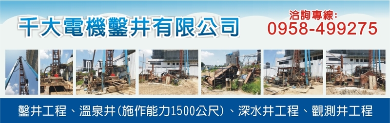 千大電機鑿井有限公司,四十餘年鑿井工程專業經驗累積,以深厚工法與技術為基礎,專門承接溫泉井、深水井、觀測井及各類鑽鑿水井工程,為需要穩定水源、高出水量及高成功率之客戶提供價值。
