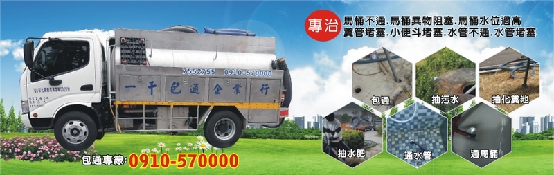 一千包通企業行擁有專業的通管技術及數十年以上豐富的經驗,舉凡:馬桶不通、馬桶異物阻塞、馬桶水位過高、糞管堵塞、小便斗堵塞、彰化通水管、彰化抽水肥、彰化抽化糞池、水泥牆壁切割、馬桶安裝、馬通水箱安裝,或是廚房油垢堵塞、浴室毛髮堵塞、水泥堵塞...等的水管不通,均可解決。