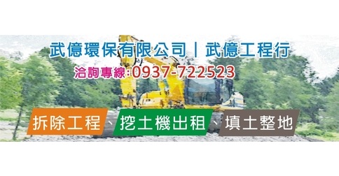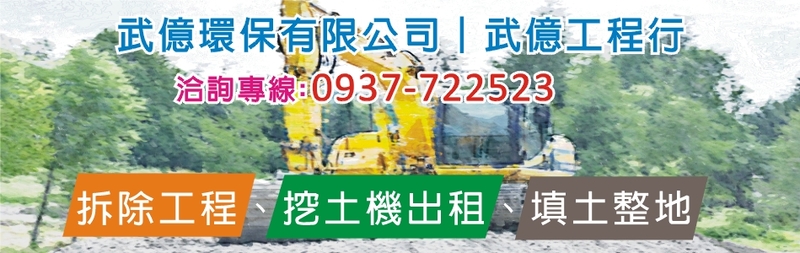 本公司為在地經營老字號環保工程廠商,主要經營:挖土機出租、各式拆除工程(拆廠房、拆房屋)、填土整理、級配、破碎機、鋼牙...等,我們有專業的工程團隊,注重施工的品質,責任施工、業界好口碑,不論是大小工程都提供客戶高品質的服務,亦歡迎舊雨新知不吝指教,有關工程大小事,請來電:0937-722523 將有專人為您服務。