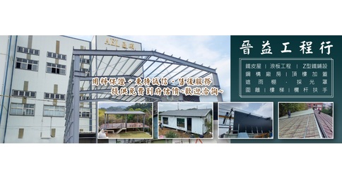 晉益工程行是以桃園地區為主的專業工班,服務內容以鐵皮屋工程、浪板拆換作業、頂樓加蓋、舊屋整建......為主,秉持誠信、顧客至上之原則!