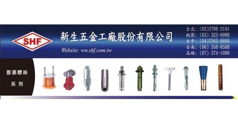 營業項目:膨脹螺絲、化學錨栓、吊配管等系列、尼龍套、新生型鋼有孔角鐵、化學錨栓、吊配管零件、單支、有孔角鐵、新生型鋼、工自樑、鋼構、吊具、防震、吊具、保溫管墊、電管配件、可提供SGS測試報告、新發售、新生免切角鐵