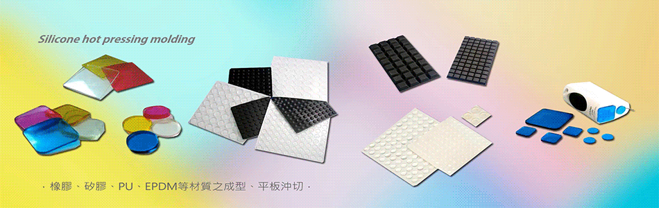 導熱矽膠、矽膠鑰匙圈、矽膠手環、光電產品散熱片、防滑墊、止滑墊、傢俱腳墊、汽車機車橡膠零件、工業橡膠、電子醫療橡膠、電子醫療矽膠、運動器材橡膠、PU自粘性橡膠墊。
