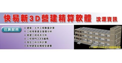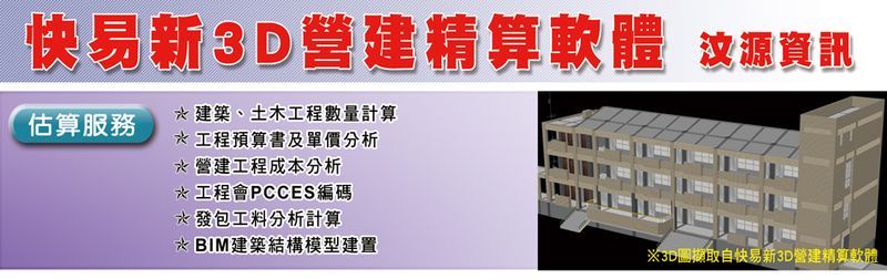 本公司採用快易新3D建築精算系統,建築圖檔導入,是工程數量計算及管控最佳利器,協助您獲得最精確之工程數量及迅速準確之預算數量控管。