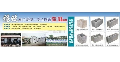 穩統組合房屋、組合屋、安全圍籬、高壓連鎖磚、圍牆磚、空心磚19X19X39cm(2孔)、空心磚19X19X39cm(3孔)、空心磚9X19X39cm、口字磚19X19X19cm、口字磚10X19X19cm、口字磚14X19X19cm、空心磚14X19X39cm