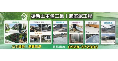 土木建築、景觀造景、景觀設計、景觀施工、假山水池設計、假山水池施工、庭園景觀、營造修繕工程、房屋新建、改建工程、修繕、水池設計、花園水池施工、花園水池設計、振新、營造修繕工程、房屋修繕、改建工程、景觀設計水池設計、登記字號:K90055-000、土木包工業、U90145-000