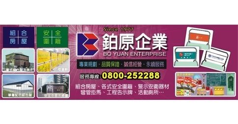 安全圍籬、組合房屋、拒馬、彎管拒馬、組合屋、工程告示牌、甲乙種圍籬、網式安全圍籬、施工圍籬、圍籬廣告、活動廁所、工地大門、綠圍籬、施工標語、安全警示器材、安全網、鷹架帆布、深挖特殊安全措施、警示燈、安全帶、安全帽、高架式組合屋、樣品屋、警示安衛器材、圍籬、施工大門、公共工程圍籬、圍籬彩繪、道安器具、PE護欄、警示帶、三角錐、反光背心、反光鏡、開口措施、廣告帆布、警示標語、甲種安全圍籬、乙種安全圍籬、客製化組合房屋、甲種8’(2.4M)安全圍籬、甲種12’(3.6M)安全圍籬、特殊式組合房屋、雙層式組合房屋、單層式組合房屋、三層式組合屋、鉑原、傑鹿、安全走廊、綠圍、圍籬形象廣告、客製化乙種圍籬、請勿停車拒馬