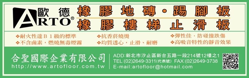 彈性佳、防碰撞跌傷、均質透心、橡膠樓梯止滑板、高吸音特性的靜音效果、耐火性達B1級的標準、止滑、抗香煙燒燙、歐德橡膠地磚、耐磨、不含鹵素、燃燒無毒煙霧