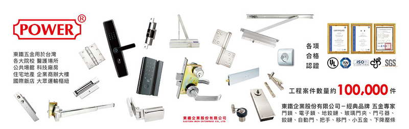 無線觸摸開關、門弓器、標準垂直安裝型門弓器、雷達感應器、玻璃門夾、把手、電磁門扣、無障礙設施、自動升降壓條、自動門機、隱藏式自動門機、感應式讀卡機、防拷感應式讀卡機、安全光線、電子五金、小五金、門鎖、電子鎖、房門鎖、四合一電子鎖、浴廁指示鎖、通道鎖、單邊鎖、防火門鎖、防煙門鎖、地鉸鏈、門鉸鏈、鉸鏈、中心型地鉸鏈、蝴蝶鉸鏈、移門、觸摸開關、感應開關、手感應開關、日規匣式鎖、輔助鎖、分段式水平鎖、美規匣式鎖、水平把手鎖、喇叭鎖、歐規匣式鎖、其他鎖類、偏心型地鉸鏈、超重型3000地鉸鏈、非自動地鉸鏈、玻璃門夾門弓器、外露型門弓器、隱藏型門弓器、滑軌型門弓器、旗型鉸鏈、重型鉸鏈、自動歸位鉸鏈、隱藏式鉸鏈、玻璃鉸鏈、輕型自動門機、重型自動門機、90度自動門機、特殊自動門機、自動門機配件、電磁五金、過電五金、移門吊輪吊軌、移門配件、門擋、門止、天地插銷、防盗五金、其他小五金