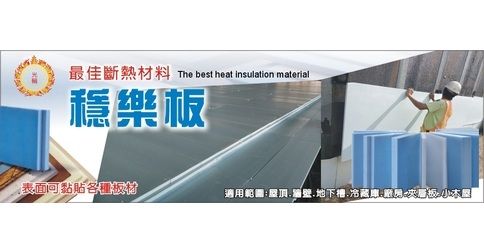 斷熱材料、穩樂板、PS板、XPS發泡隔熱板、PS隔熱板、PS隔熱磚、PE發泡管、發泡條、PE緩衝材、發泡板、屋頂防水隔熱、鋼構廠房隔熱、最佳斷熱材料、彰化穩樂板PS板、彰化斷熱材料、彰化發泡板、地下室回填土保護板、包裝緩衝材-EPE舒美布、EPE、聚乙稀單層厚板、屋頂、牆壁、地下槽、冷藏庫、商場、室內裝潢、夾層板、塗佈瀝青於防水層(毯)上面、可黏貼各種板材、PE舒美布、光輪、禹泰