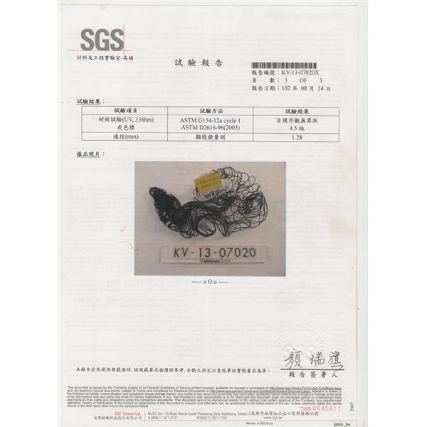 試驗報告 , 貝羽製網