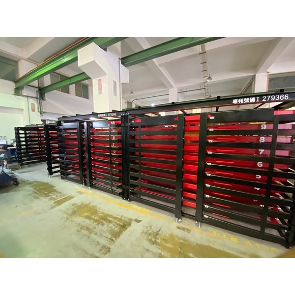 • 原祥工業社專精於拉取式鐵板倉儲、控制箱製造、折床用刀具庫、組合式零件架、防潮箱、控制箱製造、LED字幕機外箱、工作台車、機械鈑金、電腦油壓折床加工、nct 電腦沖孔加工,已有多年製造經驗;最新開發【雙向取料之拉取式鐵板倉儲】、可放置於工廠兩列之間、天車可吊到之處、使用非常方便而又不佔空間。