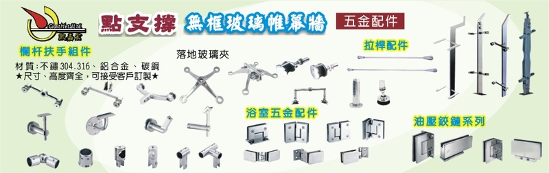 點支撐無框玻璃帷幕牆、不鏽鋼五金配件、玻璃五金、欄杆扶手、無框淋浴玻璃浴室五金、大理石擴孔加工、大理石配件、不鏽鋼欄杆扶手、藝術玻璃夾、玻璃帷幕牆不鏽鋼配件、無框玻璃帷幕牆、拉桿配件、活動隔音牆、活動牆五金、鉸鍊、爪具、駁接頭、大理石擴孔加工、SPIDER、RIBSPIDER、FIXER、SWIVEL、COUNTERSUNK、CENTER COUPLER、UNIVERSAL FIXER、CANOPY FITTING、台中不鏽鋼五金配件、台中不鏽鋼欄杆扶手、台中藝術玻璃夾、台中玻璃帷幕牆、乾式施工、傳統L版五金配件、慧魚背栓五金配件、擴孔螺栓、大理石吊夾、蝴蝶夾、U型墊片、插梢片、金剛石拓孔鑽、石材背栓、背栓掛件、大理石雙頭拓孔機、台中不鏽鋼金配件、台中大里石配件、台中蝴蝶夾、落地玻璃夾、欄杆扶手組件、3960 擴孔螺絲、3992 大理石吊夾、3941 鑽石鋸片、3951 水泥鑽頭、3971 塑膠墊塊、3993 蝴蝶夾、3916 金剛石拓孔鑽、3967 背栓掛件、3968 背栓掛件、石材背栓、3972 U型墊片、3964螺紋錙栓、不銹鋼五金配件、不銹鋼欄杆扶手、玻璃帷幕牆不銹鋼配件