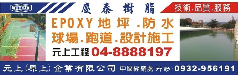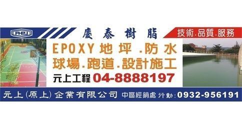 EPOXY地坪、EPOXY防水、聚胺脂、抗菌彩砂優固地床、停車場硬質PU、游泳池、矽酸質防水、球場設計施工、跑道設計施工、耐酸鹼Epoxy無縫無塵地坪、防水工程設計施工、環氧樹脂買賣、無塵研磨、結構裂縫補強、紅磚土買賣、防水防熱、壁癌處理、PU跑道、跑道修補、PU球場、球場PU防水、球場PU地坪、球場修補、DIY防水塗料、高性能聚脲噴塗材料、補漏、補裂工程承攬、環氧樹脂施塗、防水材、球場材、接著劑、止滑劑、水性彈性塗料、水性防水塗料、單液彈泥、耐磨地坪材、慶泰樹脂經銷買賣、彰化EPOXY地坪防水、彰化PU球場跑道設計施工