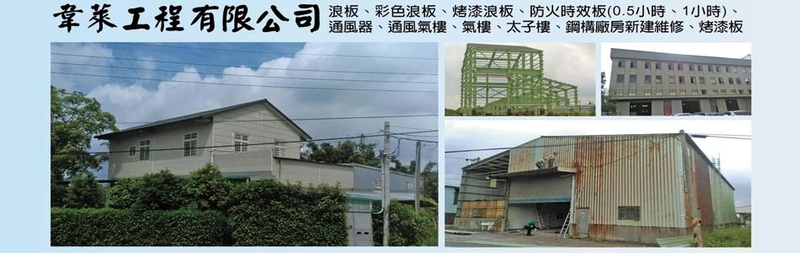 浪板、彩色浪板、烤漆浪板、防火時效板(0.5小時、1小時)、通風器、通風氣樓、氣樓、太子樓、鋼構廠房新建維修、烤漆板