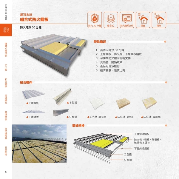 屋頂系統組合式防火鋼板-防火時效30分鐘產品說明