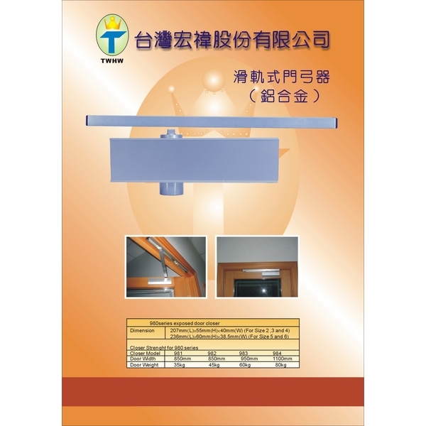 手工具、門弓器、滑軌式門弓器、隱藏式門弓器、980系列門弓器、28A系列門弓器、780系列門弓器、150公斤門弓器、250-300公斤門弓器、地鉸鏈、重型門弓器、輕型門弓器、閉門器、關門器、鋁合金門弓器、省力滑軌式鋁合金門弓器、門弓器零組件、省力滑軌式門弓器、門弓器安裝實例